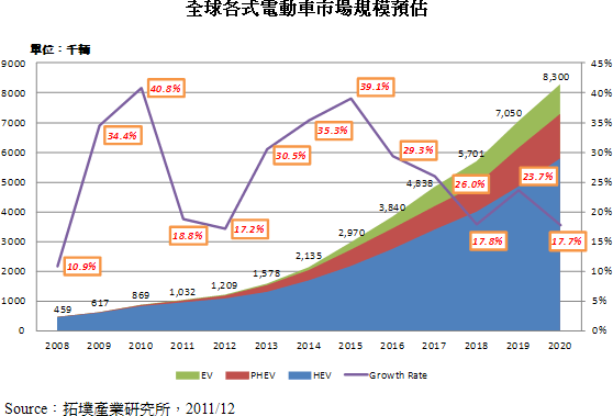 - 2013年預計電動車市場成長幅度為25%