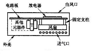 風(fēng)扇M固定在電路板下方,風(fēng)扇中心正對(duì)著放電器,相距15mm左右。風(fēng)扇的出風(fēng)方向應(yīng)朝上,以便將放電器產(chǎn)生的負(fù)離子向上吹到空氣中。整機(jī)應(yīng)裝入絕緣外殼中,在外殼上面正對(duì)放電器的位置開一些孔縫作為出風(fēng)口,在外殼兩側(cè)靠近風(fēng)扇的地方開孔作為進(jìn)氣口。12V電源線與汽車點(diǎn)煙器插頭相連接。