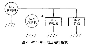 在新的電氣系統(tǒng)中,有兩種實施方案:一種是全車42V單一電壓方案;另一種是42V/14V雙電壓方案。