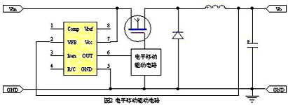 當(dāng)主電路的供電電壓不太高時(shí),可插入圖二所示的電平轉(zhuǎn)換驅(qū)動(dòng)電路。這種方法的優(yōu)點(diǎn)是成本較低,缺點(diǎn)一是當(dāng)輸入電壓Vin較高時(shí)不易處理好;二是電平移動(dòng)驅(qū)動(dòng)部分需要電荷泵供電,因此電路比較繁復(fù)。