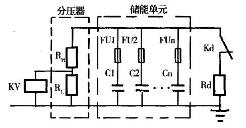 脈沖電容器儲能后,由控制電路發(fā)送命令進行觸發(fā)放電(ETcG發(fā)射)。ETCG發(fā)射精度和一致性與PPS儲能量密切相關,電容器儲能大小與其充電電壓的量值平方成正比,因此控制電路必須能精確控制充電電壓量值,這可以通過與被充電容器組并聯(lián)"分壓器一電壓繼電器組"來實現(xiàn),見圖2。