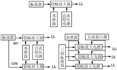 根據(jù)輸出交流電源的相數(shù),穩(wěn)頻電源可分為單相式,兩相正交式和三相對稱式。單一輸出量的穩(wěn)頻穩(wěn)壓源由于各相間的相移恒定,因此不需要移相調(diào)節(jié)電路。當輸出物理量既要求有電壓回路,還要求有電流回路,且電壓與電流的相位差要求既能調(diào)節(jié)又能穩(wěn)定以適應(yīng)不同負載時,則相應(yīng)的穩(wěn)頻穩(wěn)壓/穩(wěn)流電源應(yīng)包括電壓和電流輸出回路。其結(jié)構(gòu)如圖1所示。