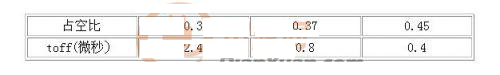 該電路具有以下優(yōu)點(diǎn):①電路結(jié)構(gòu)簡單可靠,實(shí)現(xiàn)了隔離驅(qū)動。②只需單電源即可提供導(dǎo)通時(shí)正、關(guān)斷時(shí)負(fù)壓。③占空比固定時(shí),通過合理的參數(shù)設(shè)計(jì),此驅(qū)動電路也具有較快的開關(guān)速度。該電路存在的缺點(diǎn):一是由于隔離變壓器副邊需要一個(gè)假負(fù)載防震蕩,故該電路損耗較大;二是當(dāng)占空比變化時(shí)關(guān)斷速度變化加大。脈寬較窄時(shí),由于是貯存的能量減少導(dǎo)致MOSFET柵極的關(guān)斷速度變慢。表1為不同占空比時(shí)關(guān)斷時(shí)間toff(驅(qū)動電壓從10伏下降到0伏的時(shí)間)內(nèi)變化情況。