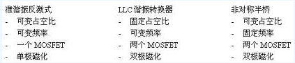 圖1:準(zhǔn)諧振、LLC和非對(duì)稱半橋拓?fù)涞谋容^