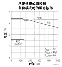 圖 3:LTC3226 從正常模式切換到備份模式時的瞬態(tài)波形