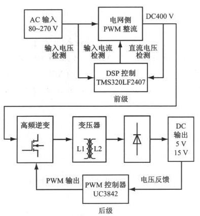 圖1 采用PWM 整流技術(shù)的高功率因數(shù)開關(guān)電源結(jié)構(gòu)