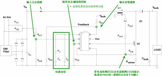 作為增強(qiáng)型PFC控制器,NCP1611采用電流控制頻率反走CrM模式及跳周期模式,可優(yōu)化整個(gè)負(fù)載范圍內(nèi)的效率,實(shí)現(xiàn)更好的輕負(fù)載效率,以及非常強(qiáng)大的安全特性。