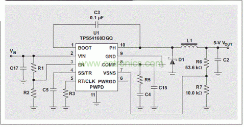 圖 1 TPS54160 參考示意圖