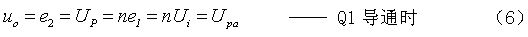 (7)式中,D為占空比,uo為反激輸出電壓,其值為: