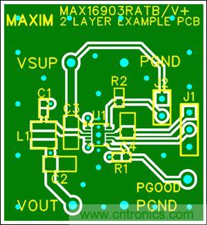 針對開關(guān)穩(wěn)壓器MAX16903(圖9)外圍元件的合理布局,有助于從源頭降低噪聲和電磁輻射,有助于節(jié)約項(xiàng)目評估階段的寶貴時(shí)間,簡化設(shè)計(jì)。