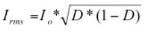 在降壓轉(zhuǎn)換器中,使用下列近似式,根據(jù)輸出電流(Io)和占空比(D)可以很輕松地計(jì)算出RMS電流: