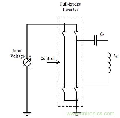 另外一個(gè)改變輸出功率的方式為改變發(fā)射端上的驅(qū)動(dòng)電壓,參考圖(二)所示,在同一線圈與電容的諧振組合中,當(dāng)于驅(qū)動(dòng)發(fā)射線圈上的開(kāi)關(guān)電壓大小即直接改變的輸出功率的大小,在此將這個(gè)方式定義為變壓式功率調(diào)整。