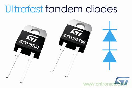 第二代600V、8A/12A超高速串聯(lián)二極管性能在開關(guān)頻率高達(dá)100KHz和結(jié)溫低于100攝氏度時,可與碳化硅二極管相媲美,但價格比碳化硅二極管低至少30%。SiC二極管的性能不受結(jié)溫的影響,在結(jié)溫高于100攝氏度時,SiC二極管性能高于超高速串聯(lián)二極管。目前ST已開發(fā)出650V、20A的SiC二極管,使得其SiC二極管產(chǎn)品系列支持正向電流為4A、6A、8A、12A和20A的不同應(yīng)用。