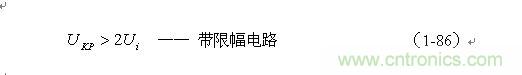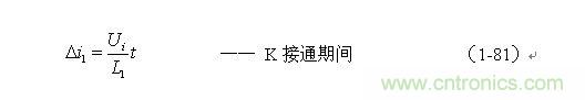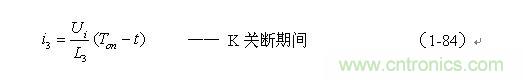 根據(jù)圖1-17,加到開關(guān)器件(控制開關(guān))兩端的峰值電壓UKP正好等于輸入電壓Ui與反電動勢峰值Up-之和,即: