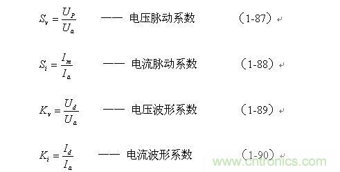 因此,電壓和電流的脈動系數(shù)Sv、Si以及波形系數(shù)Kv、Ki分別表示為: