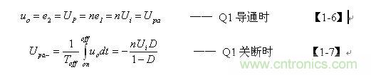 【1-5】式中的uo為正激輸出電壓,其值為: