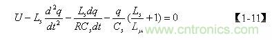 圖4中,當(dāng)電源開(kāi)關(guān)管Q1導(dǎo)通時(shí),設(shè)輸入電壓為U,流過(guò)Ls的電流為 i,流過(guò)Cs的電流為i1 ,流過(guò)Lu 的電流為i2 ,流過(guò)R的電流為i3 ,Cs存儲(chǔ)的電荷為q,如果忽略Lds的作用,則列出回路方程為: