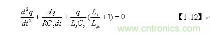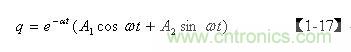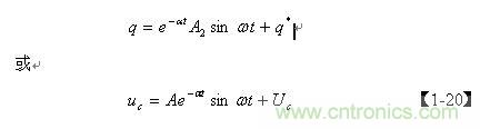 前面已經(jīng)指出,齊次微分方程【1-12】式僅表示電容Cs充滿電后,輸入電壓等于0時(shí),電容兩端電壓或存儲(chǔ)電荷隨時(shí)間變化的過(guò)程,即,當(dāng)t = 0時(shí),q從最大值開(kāi)始隨時(shí)間變化的過(guò)程。但齊次微分方程【1-12】式并不完全表示電容Cs充、放電的全過(guò)程,我們仔細(xì)觀察【1-17】式便知:在LC電路中,當(dāng)t = 0時(shí),如果q 為最大值,電容一定是按余弦規(guī)律放電;如果 q為最小值,則電容一定是按正弦規(guī)律充電。因此,我們還需要根據(jù)初始條件來(lái)對(duì)【1-10】非齊次微分方程式進(jìn)一步求解。