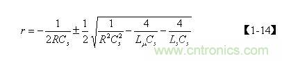 【1-12】式表示,電容Cs充滿電后,輸入電壓等于0時(shí)電容兩端電壓或存儲(chǔ)電荷隨時(shí)間變化的過(guò)程。對(duì)【1-12】式求解,需要先求解其特征方程,其特征方程為:
