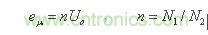 值得注意的是,當(dāng)電源開(kāi)關(guān)管Q1關(guān)斷時(shí),由于變壓器次級(jí)線圈整流濾波電路D2和C2的接入,開(kāi)關(guān)變壓器初、次級(jí)線圈的等效分布電容Cs相對(duì)于濾波電容C2來(lái)說(shuō),其作用將變得微不足道;此時(shí),由于輸出電壓Uo通過(guò)變壓器初、次級(jí)線圈的耦合和反射作用,使得變壓器初級(jí)線圈產(chǎn)生的反電動(dòng)勢(shì)電壓eu 完全被鉗制在一個(gè)與次級(jí)輸出電壓Uo成正比的數(shù)值上,即: