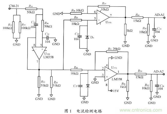 電池充放電電流的大小尤為關(guān)鍵。電路圖如圖1所示,因?yàn)槭羌葯z測(cè)充電電流也檢測(cè)放電電流,故在小電阻上的電壓又是兩個(gè)方向,在電路檢測(cè)中用兩個(gè)通道分別檢測(cè),這樣也便于分別進(jìn)行信號(hào)的調(diào)理,同時(shí)也便于用A/D轉(zhuǎn)換器的一個(gè)輸入通道來(lái)測(cè)量。