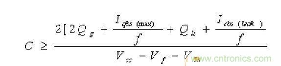 最后一個因素只有當自舉電容是電解電容時才考慮,其它類型電容可以忽略,因此建議使用非電解類電容。