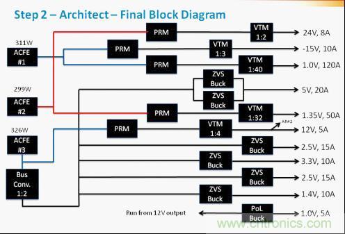 構(gòu)建系統(tǒng)的第一個(gè)步驟是創(chuàng)建一個(gè)電源系統(tǒng)的方框圖,從輸出開始,然后向輸入后向推進(jìn)。從最低功率級(jí)別開始它的運(yùn)作更好,并從那里繼續(xù)工作,以便可以審查功率元件類別,并隨功率級(jí)別的增加在必要時(shí)做出改變。