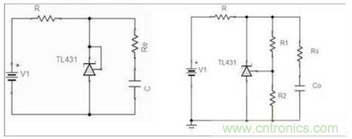 對(duì)于如圖2 的TL431 常用穩(wěn)壓電路,C 的電壓是確定的。