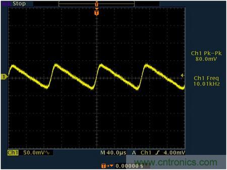 以安森美NCV4949來講,在其輸出端加一個10uF的陶瓷電容,在電容后端測量到的瞬態(tài)響應如圖(AC mode):