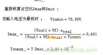注意合理匝數(shù)取整。這個(gè)結(jié)合自己項(xiàng)目實(shí)際情況,取整后,變比會(huì)有所變化,Dmax也會(huì)有所變化,所以需要用取整后的參數(shù)進(jìn)行核算Bmax。