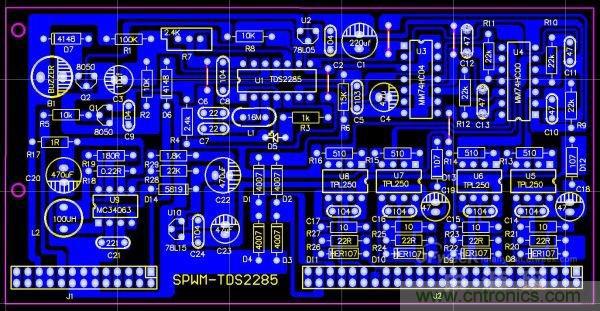 SPWM的驅(qū)動核心采用了單片機SPWM芯片TDS2285,所以,SPWM驅(qū)動部分相對純硬件來講,比較簡單,制作完成后要調(diào)試的東西很少,所以,比較容易成功。