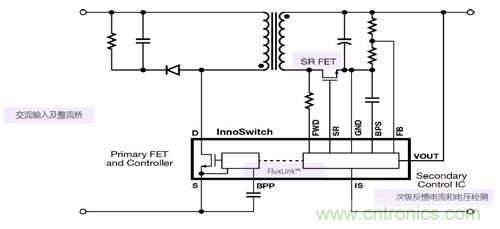 PI的FluxLink技術(shù),就是為了解決這個困擾而開發(fā)的。FluxLink技術(shù)不僅能實現(xiàn)高性能次級反饋控制,而且還能實現(xiàn)初級反饋控制通常所提供的線路簡單以及元器件數(shù)目少的優(yōu)勢,而高效的同步整流技術(shù)的采用,可以保證在包括重載在內(nèi)的整個負載范圍內(nèi)均提供極高的效率,讓電源的設(shè)計“魚和熊掌兼得”。