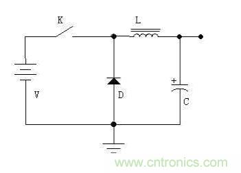 開(kāi)關(guān)電源是一種比較新型的電源。它具有效率高,重量輕,可升、降壓,輸出功率大等優(yōu)點(diǎn)。但是由于電路工作在開(kāi)關(guān)狀態(tài),所以噪聲比較大。 通過(guò)下圖,我們來(lái)簡(jiǎn)單的說(shuō)說(shuō)降壓型開(kāi)關(guān)電源的工作原理。如圖所示,電路由開(kāi)關(guān)K(實(shí)際電路中為三極管或者場(chǎng)效應(yīng)管),續(xù)流二極管D,儲(chǔ)能電感L,濾波電容C等構(gòu)成。當(dāng)開(kāi)關(guān)閉合時(shí),電源通過(guò)開(kāi)關(guān)K、電感L給負(fù)載供電,并將部分電能儲(chǔ)存在電感L以及電容C中。由于電感L的自感,在開(kāi)關(guān)接通后,電流增大得比較緩慢,即輸出不能立刻達(dá)到電源電壓值。一定時(shí)間后,開(kāi)關(guān)斷開(kāi),由于電感L的自感作用(可以比較形象的認(rèn)為電感中的電流有慣性作用),將保持電路中的電流不變,即從左往右繼續(xù)流。這電流流過(guò)負(fù)載,從地線返回,流到續(xù)流二極管D的正極,經(jīng)過(guò)二極管D,返回電感L的左端,從而形成了一個(gè)回路。通過(guò)控制開(kāi)關(guān)閉合跟斷開(kāi)的時(shí)間(即PWM——脈沖寬度調(diào)制),就可以控制輸出電壓。如果通過(guò)檢測(cè)輸出電壓來(lái)控制開(kāi)、關(guān)的時(shí)間,以保持輸出電壓不變,這就實(shí)現(xiàn)了穩(wěn)壓的目的。