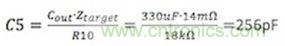 由于安裝好的R10值非常接近18kΩ,因此可以保持不變。C5的選擇原則是利用R3和C5形成的極點(diǎn)抵消輸出電容和ESR組成的零點(diǎn)。