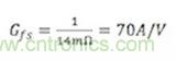 至此我們已經(jīng)完成了大半的電壓調(diào)節(jié)器模塊(VRM)設(shè)計(jì),還需要一次計(jì)算來確定基本的VRM特性——跨導(dǎo)。電流模式轉(zhuǎn)換器是最簡單的實(shí)現(xiàn)方式,因?yàn)樗鼙槐硎緸榭鐚?dǎo)方塊。VRM的輸出阻抗與跨導(dǎo)(Gfs)直接相關(guān),關(guān)系式是: