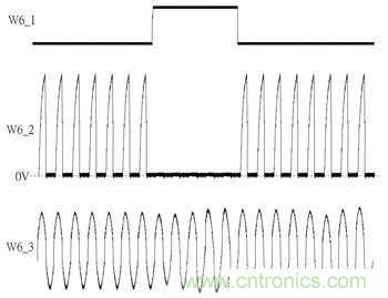 參考圖2其W6_3為線圈訊號、W6_2為S12即Q13之閘極端訊號、W6_1為Q131閘極端訊號,當(dāng)RX-U1輸出高電位到Q131便會使該區(qū)段S12訊號維持在低電位,造成整流器在該區(qū)段不發(fā)生導(dǎo)通狀況,用意在于暫停整流動作。