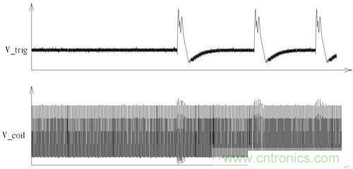 圖7 供電線圈訊號與取出觸發(fā)訊號波形