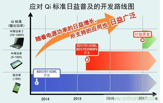 ROHM面向平板電腦和智能手機等移動設(shè)備,一直在推進無線供電控制IC(BD57015GWL:接受端/終端,BD57020MWV:發(fā)射端/充電端)的開發(fā)。
