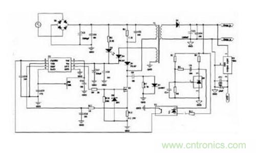 開關(guān)電源電路控制芯片采用UC3842,UC3842是目前比較理想的新型的脈寬調(diào)制器。由該集成電路構(gòu)成的開關(guān)穩(wěn)壓電源與電壓控制型脈寬調(diào)制開關(guān)穩(wěn)壓電源相比具有以下特點(diǎn):1)微調(diào)的振蕩器放電電流,可精確控制占空比;2)電流模式工作到500kHz;3)自動(dòng)前饋補(bǔ)償;4)鎖存脈寬調(diào)制,可逐周限流;5)內(nèi)部微調(diào)的參考電壓,帶欠壓鎖定;6)大電流圖騰柱輸出;7)欠壓鎖定,帶滯后;8)低啟動(dòng)和工作電流。