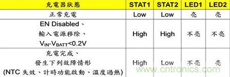 若電池在充電狀態(tài)下,充電時間已超過使用者所設(shè)定的充電計時保護時間,但充電器卻仍尚未脫離當前的充電狀態(tài)或結(jié)束充電,這時IC的充電計時保護功能就會立即啟動,迫使充電器停止對電池充電(圖3),此時的STAT1(Pin 12)位準為High,LED1指示燈為不亮(圖4);若將TMR(Pin 15)腳位連接至GND(Pin 6)腳位,便可以解除使充電計時保護功能。