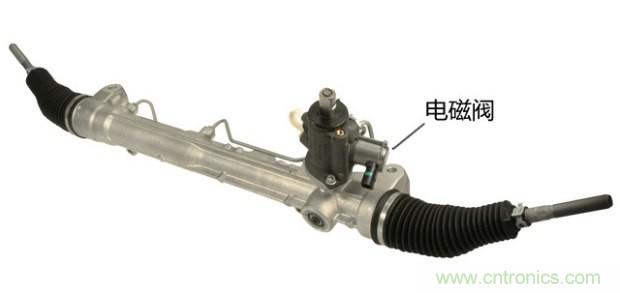可變助力應用最為成熟的方案是在傳統(tǒng)HPS的轉閥附近增加一個電磁閥,根據(jù)當前車速對液流特性進行調節(jié),真正實現(xiàn)“原地輕盈,高速穩(wěn)健”的轉向手感。
