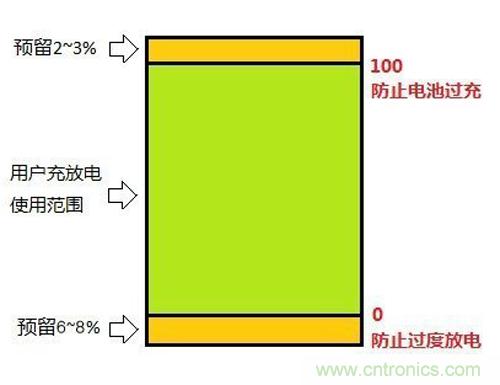 每塊電池在出廠時都會設(shè)定一個安全值。這是從電池安全的角度考慮,電池的初始電量中,生產(chǎn)廠家會保留一部分電量不被使用。之所以這樣做,完全是出于安全的考慮。電池不宜過度的充放電,如果電池被過度充電,極易誘發(fā)事故,最典型的例子就是新聞上常有的手機使用劣質(zhì)充電器充電導(dǎo)致電池過充而引發(fā)的爆裂事故。同樣,如果電池過度的放電,超過電池放電的終止電壓值,還繼續(xù)放電時就可能會造成電池內(nèi)壓升高,正、負極活性物質(zhì)的可逆性遭到損壞,使電池的容量產(chǎn)生明顯減少。因此,電池設(shè)定的“安全冗余”同時也是為了保護電池的正常壽命。