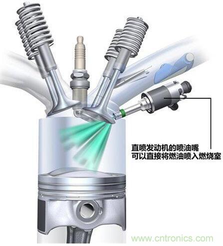 缸內(nèi)直噴,顧名思義就是直接將燃油噴入氣缸內(nèi)與空氣混合的技術(shù)。與傳統(tǒng)歧管噴射的意義不同,缸內(nèi)直噴將噴射壓力更進一步提高,使燃油霧化更加細致,真正實現(xiàn)了精準地按比例控制噴油并與進氣混合,同時消除了缸外噴射的缺點。在發(fā)動機低轉(zhuǎn)速低載荷時,延遲噴射,在活塞進行壓縮沖程最后階段時噴射,利用空氣渦流,使燃油聚集在火花塞附近,分層燃燒實現(xiàn)節(jié)油的目的,但當發(fā)動機轉(zhuǎn)速上去,載荷上去時,還是要提前噴射,在吸氣沖程就將燃油噴射進去,使油氣均勻混合燃燒。