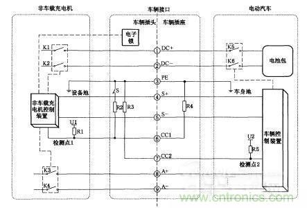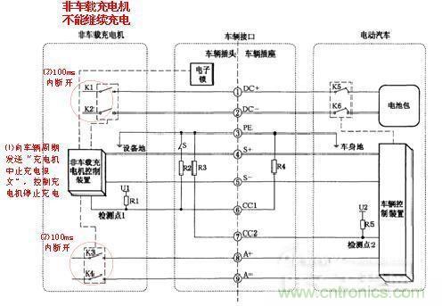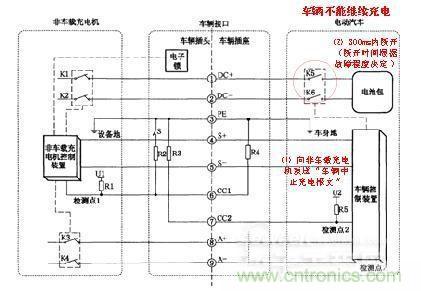 1)在充電過程中,非車載充電機控制裝置通過對檢測點1的電壓進行檢測,如果判斷