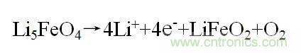 在這個(gè)過程中,大部分的鋰離子都無法可逆的再次嵌入到LiFeO2中,但是這些鋰離子可以用于抵消負(fù)極帶來的不可逆容量損失。因此在使用中我們只需要在正極材料中加入少量的Li5FeO4即可。