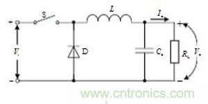 圖中S為功率開(kāi)關(guān),D為二極管,L為電感,Co為輸出電容,RL為負(fù)載。Vi為輸入電壓,Vo和Io分別為輸出電壓和輸出電流。