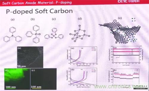 鈉離子電池和鋰離子電池的反應(yīng)機(jī)理相近,正極材料除了磷酸鹽或氟化磷酸鹽以外,還可以用鎳錳層狀過(guò)渡金屬氧化物。在負(fù)極材料方面可選擇碳類、合金和化合物。在三大類負(fù)極材料中,我們還是選擇最便宜的碳材料。我們對(duì)于負(fù)極碳材料又進(jìn)行了軟碳、硬碳和石墨烯三個(gè)分類的研究。