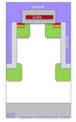 圖2顯示平面式MOSFET情況下構(gòu)成RDS(on) 的各個(gè)分量。對(duì)于低壓MOSFET,三個(gè)分量是相似的。但隨著額定電壓增加,外延層需要更厚和更輕摻雜,以阻斷高壓。額定電壓每增加一倍,維持相同的RDS(on)所需的面積就增加為原來(lái)的五倍以上。對(duì)于額定電壓為600V的MOSFET,超過(guò)95%的電阻來(lái)自外延層。顯然,要想顯著減小RDS(on)的值,就需要找到一種對(duì)漂移區(qū)進(jìn)行重?fù)诫s的方法,并大幅減小epi電阻。