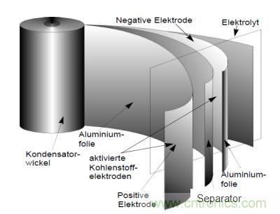 超級電容的能量儲存在雙層電解質(zhì),即赫爾姆霍爾茨層中進(jìn)行。此類電容器極大的容量一方面是基于赫爾姆霍爾茨層厚度薄的特性,其厚度僅為數(shù)微米(1微米=10-10 米),另一方面是由于采用了表面面積極大的電極材料。這里原則上建議以下三種合適的材料: