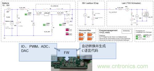 控制軟件采用了先進(jìn)的基于模型的設(shè)計方法。包括對整個電源管理在VHDL-AMS中進(jìn)行建模[8]。通過經(jīng)IEEE標(biāo)準(zhǔn)化處理的模型描述語言,也可根據(jù)硬件特性對控制系統(tǒng)進(jìn)行建模和模擬,以及通過自動編碼將控制系統(tǒng)以自動化方式轉(zhuǎn)移到目標(biāo)硬件[9]。